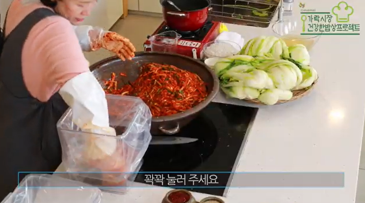 - **김치통 덧대기:** 김치통 안에 **식품용 비닐**을 덧대어 김치를 담으면 공기 차단 효과가 극대화되며, 나중에 통을 씻기도 편리합니다 .