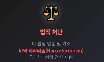미국으로 압송된 마두로는 마약 테러리즘(Narco-terrorism) 및 부패 혐의로 미 법정에 설 예정입니다. 이미 미 사법부는 마두로 체포에 1,500만 달러의 현상금을 내건 바 있습니다.
