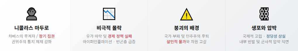 집권 초기, 그는 차베스의 카리스마를 흉내 내며 서민층의 지지를 호소했습니다. 그러나 그는 차베스만큼의 정치적 유연성이나 경제적 통찰력을 갖추지 못했습니다. 석유 가격 폭락이라는 거대한 파도 앞에서 그가 선택한 것은 경제 개혁이 아닌, 반대파에 대한 탄압과 권력의 사유화였습니다.