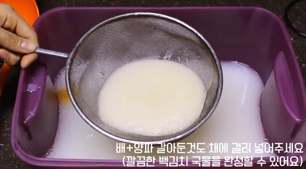 백김치의 핵심인 시원한 국물을 만드는 단계입니다.