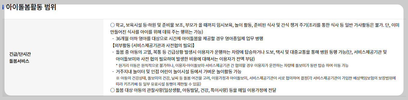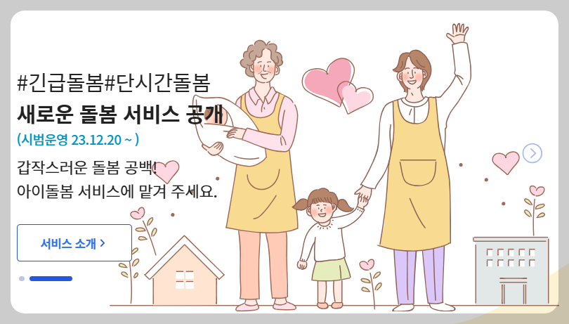 - 아이돌봄 서비스: 어린이의 안전과 건강을 위한 직접적인 돌봄 서비스 제공
