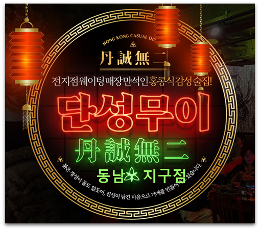 오늘 하루도 수고 많으셨습니다. 이제 완벽한 하루의 마침표를 찍을 시간입니다. 단성무이 동남지구점은 붉은 조명과 낭만적인 분위기, 그리고 맛있는 음식으로 당신의 저녁을 특별하게 만들어 줄 것입니다.