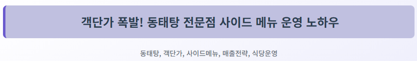 📈 객단가 폭발! 동태탕 전문점에서 매출을 2배 올린 성공적인 사이드 메뉴 Best 3 분석 (객단가 전략)