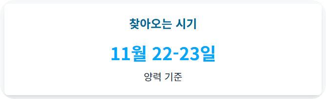 - 첫눈 소식: 이름의 뜻처럼 첫눈 소식을 접할 확률이 높아집니다. 지역에 따라 서리가 내리고 땅이 얼기도 하니 월동 준비를 서둘러야 합니다.