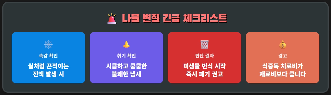 🚨 식품 위생 주의: 나물 변질 식별 가이드