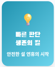 - 상비약 준비: 소화제, 해열제, 화상 연고 등은 연휴 시작 전 미리 구비하는 것이 가장 안전합니다.