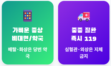 - 🌐 응급의료포털(www.e-gen.or.kr): 내 위치 주변의 문 연 병원과 약국을 지도 형식으로 즉시 확인할 수 있습니다.