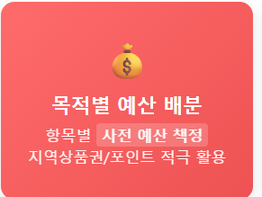 - 목적별 예산 배분: 세뱃돈, 선물비, 식비 등 항목별로 예산을 미리 책정하고 현금보다는 포인트 적립이 유리한 지역사랑상품권 등을 적극 활용하세요.