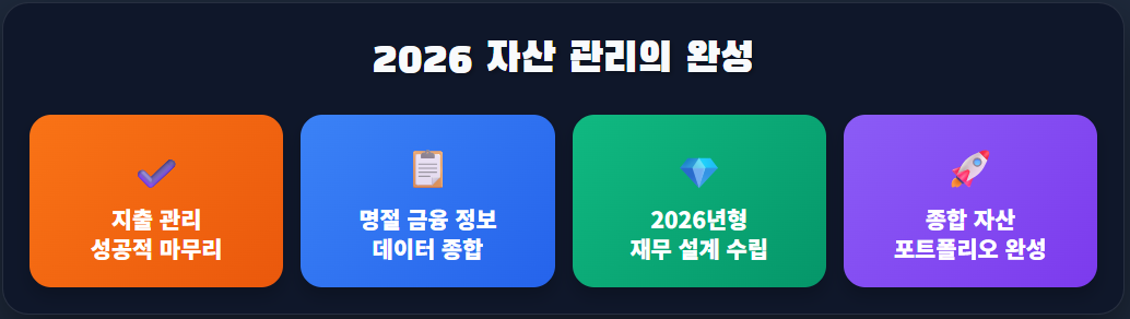 성공적인 지출 관리를 마쳤다면, 이제 명절 기간 얻은 금융 정보들을 종합하여 2026년 한 해의 재무 설계를 완성할 차례입니다.